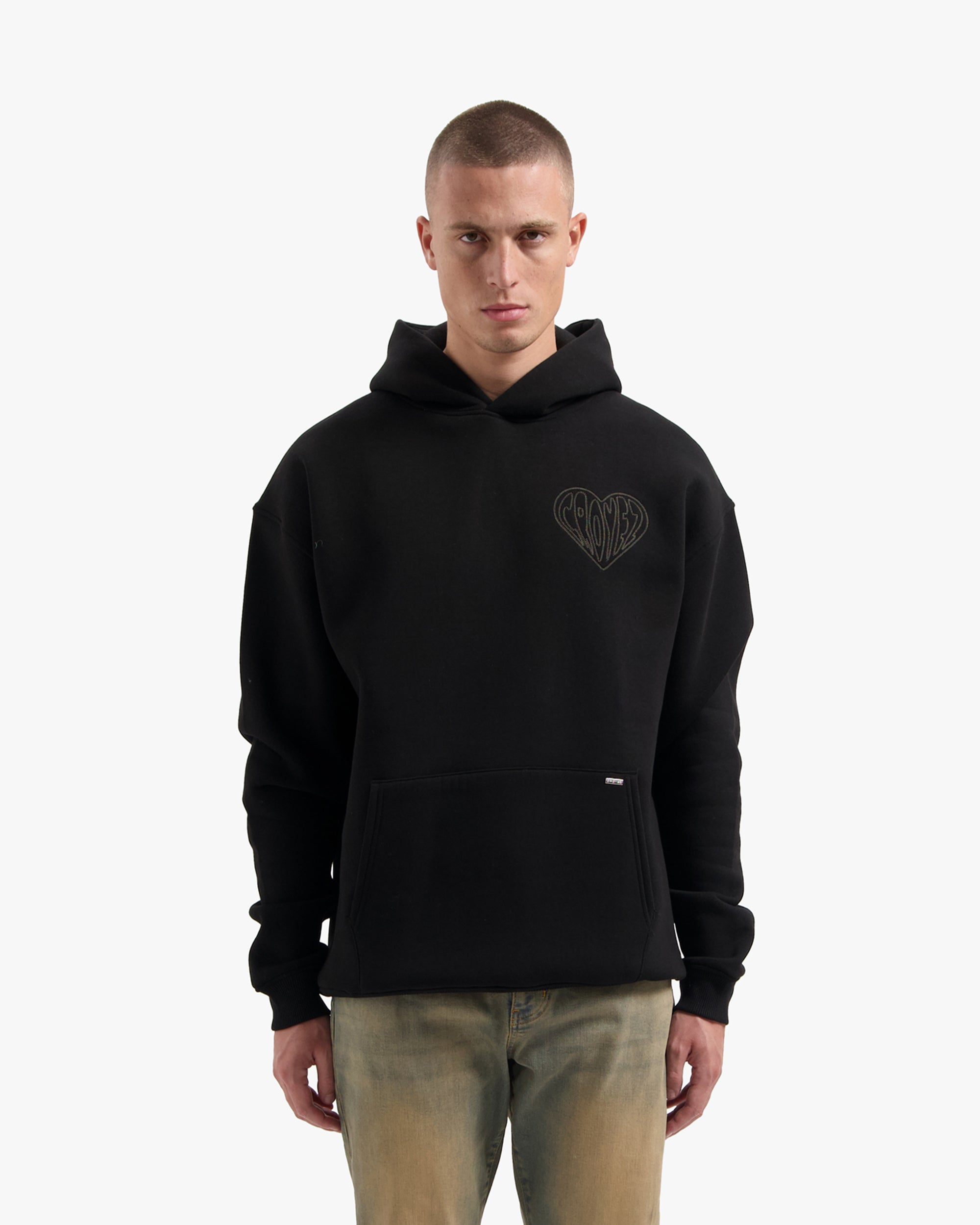 CROYEZ STITCHED HEART HOODIE | BLACK